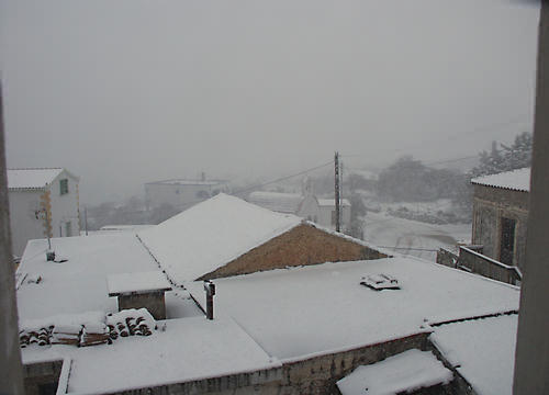 This photograph was taken also on 13th February 2004 in Astratigos - the day the worst blizzard in 28 years struck the Rodopos peninsula. The village all but vanished from view! |