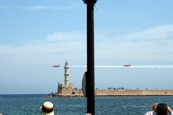 Still no more that 50 feet above the waves, still (thanfully) about 30 feet above the crowd on the harbour wall, these two gentlemen really do seem intent on playing Prima Donna's at the expense of the rest of the team members. Just where are the remaining seven you might want to know?.... |