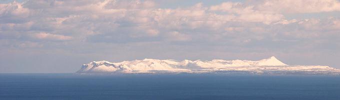 A rare shot of the Akrotiri peninsula - one that not many people are privileged to see. A winter white south western view of the peninsula taken from the opposing Rodopos peninsula. The airport is below the cone-shaped peak on the right. |