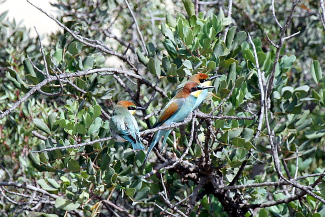 Gregarious, thrush-sized birds with bright plumage, though this is best seen when perched and not when they are chasing (and catching) flying insects in the air! They have a characteristic 'Cherp' call which can be confused with Black-headed gulls hunting insects at high altitude. |