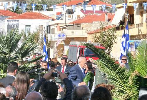 | President Karolos Papoulias laying a wreath on the cenotaph in Kolimbari at the start of the three day visit marking the island-wide celebrations of the 95th Anniversary of the union. The utter informality of the visit although he was accompanied by officers of the armed forces and politicians, was breath taking... |
