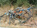 Late Thursday morning – two bucketsful. Remainder of Thursday – nothing. The following week, water gushed out for a whole hour, during which time we filled a 500 litre tank (for watering cans) and hosed everything in sight. The pressure was so great that we had to peg the sprinklers to the ground, as they were leaping in the air. Then nothing. About midnight, Richard heard the pattering of water and we were 'on' again, so he gave everything another good drenching before it disappeared once more. To be prepared for week three, we bought