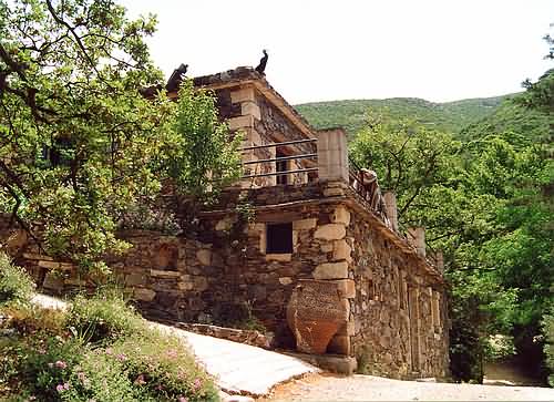 High hillsides beyond this house serve to remind that the village sits high in the mountains of North Western Crete.