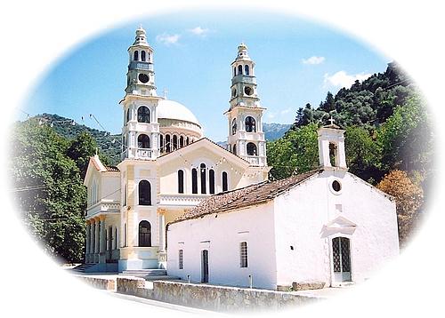 | The Panagia of the Assumption of the Virgin. These churches are a beautiful feature of the village of Meskla. The smaller church is said to be built upon the ruins of a much earlier temple - dating from the 5th or 6th centuries AD. The larger, more modern and ornate church is a more recent addition. |