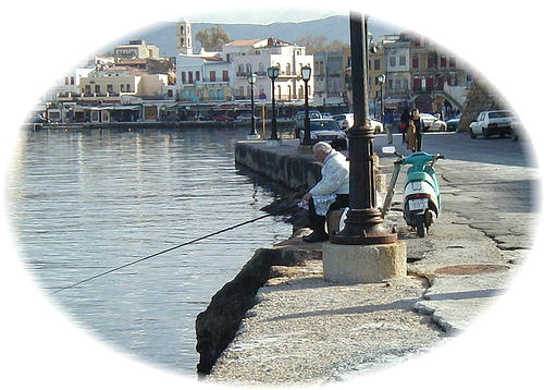 | Tourists gone. A quiet sunny morning on the Venetian Harbour late in 2002. Sometimes a setting simply begs a camera - sitting quietly in a seeming time-warp awaiting someone to record the moment. Peace tangible enough to touch. Would the sound of the camera shutter spoil it? No, the fisherman slept on! |