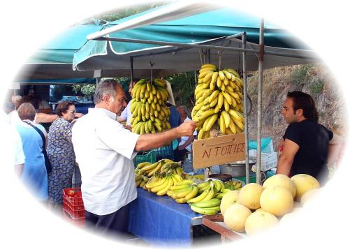 Cretan bananas 'ee Topies' (local) - are smallish, but the nearest in taste are those from the mountainous areas of Java - rather further away!