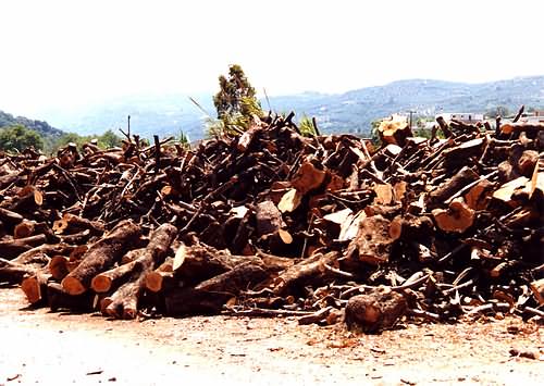 | The wood used on Crete varies, but there is a considerable amount of olive wood. Olives fruit on new wood and are heavily pruned after each crop - a renewable source of raw material. Some wood is 'opportunity' - from building sites. |